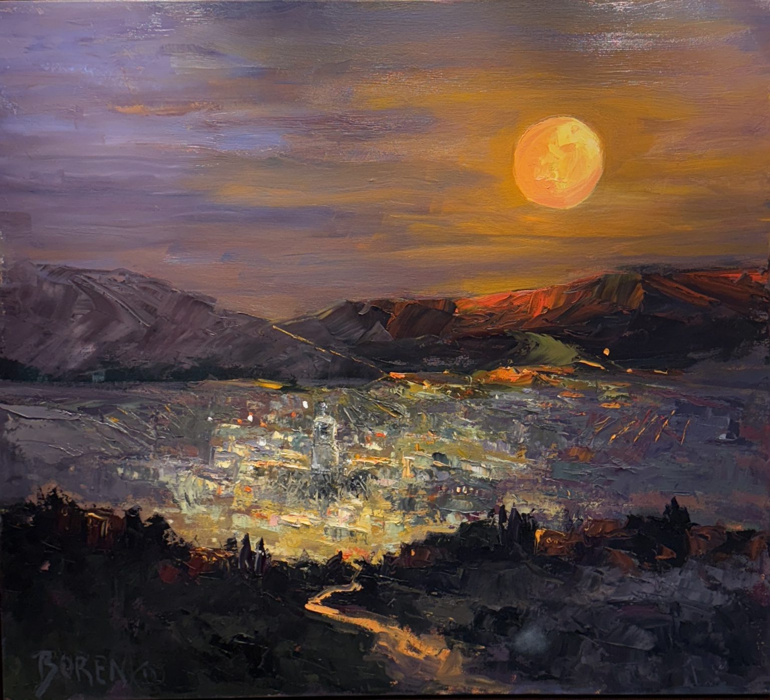 After working in oils the conventional way (from dark to light) I have recently enjoyed a new direction with a more direct approach of using palette knives for most of the painting. As in painting with watercolors,